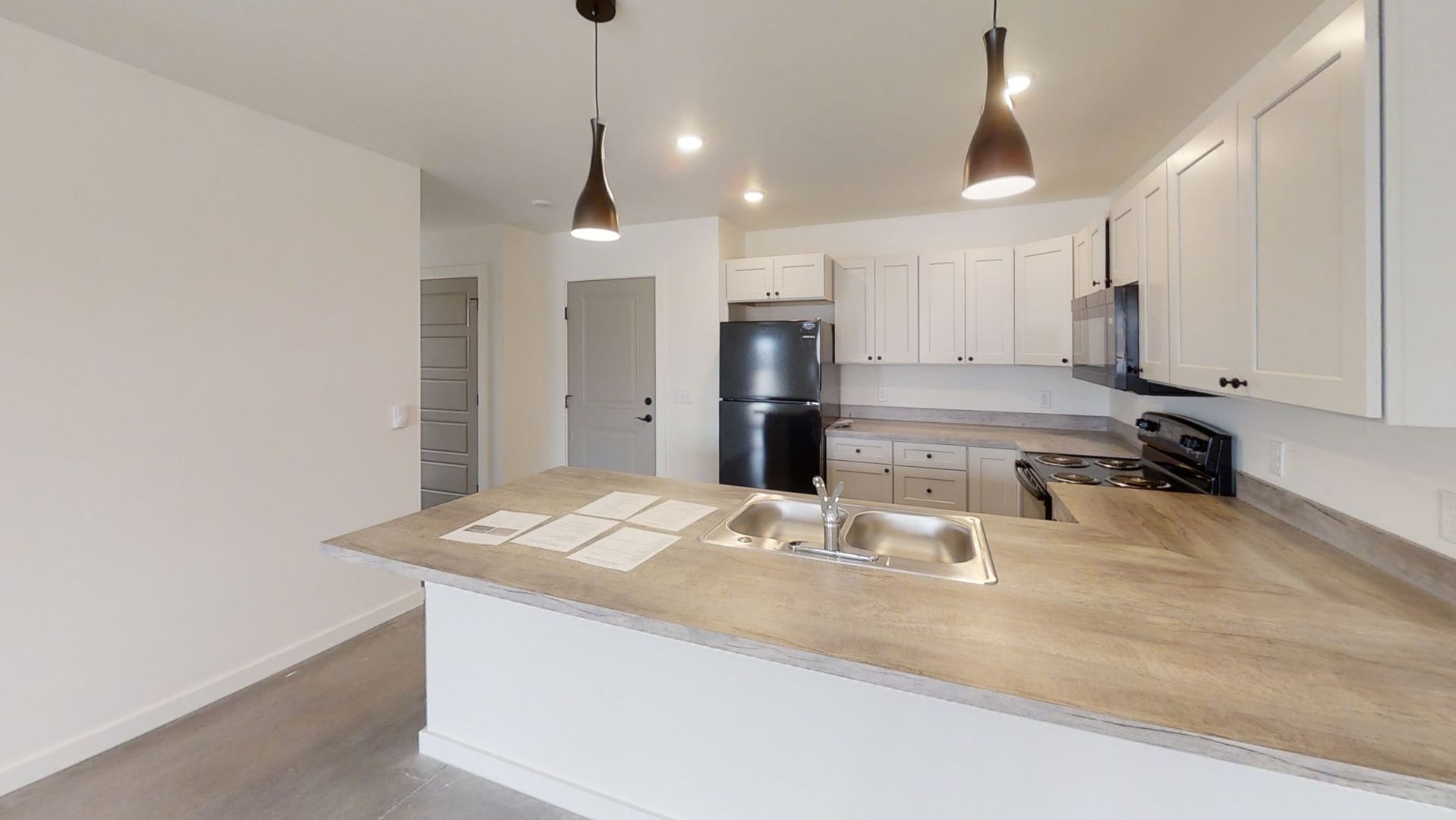 Open floor plan with a spacious kitchen, living area and dining room - great for entertaining!
