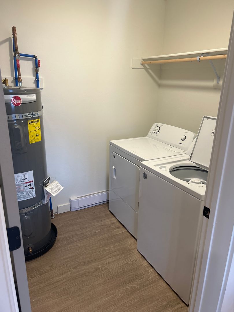 Features include air conditioning, laminate wood flooring through out and a washer dryer in unit.