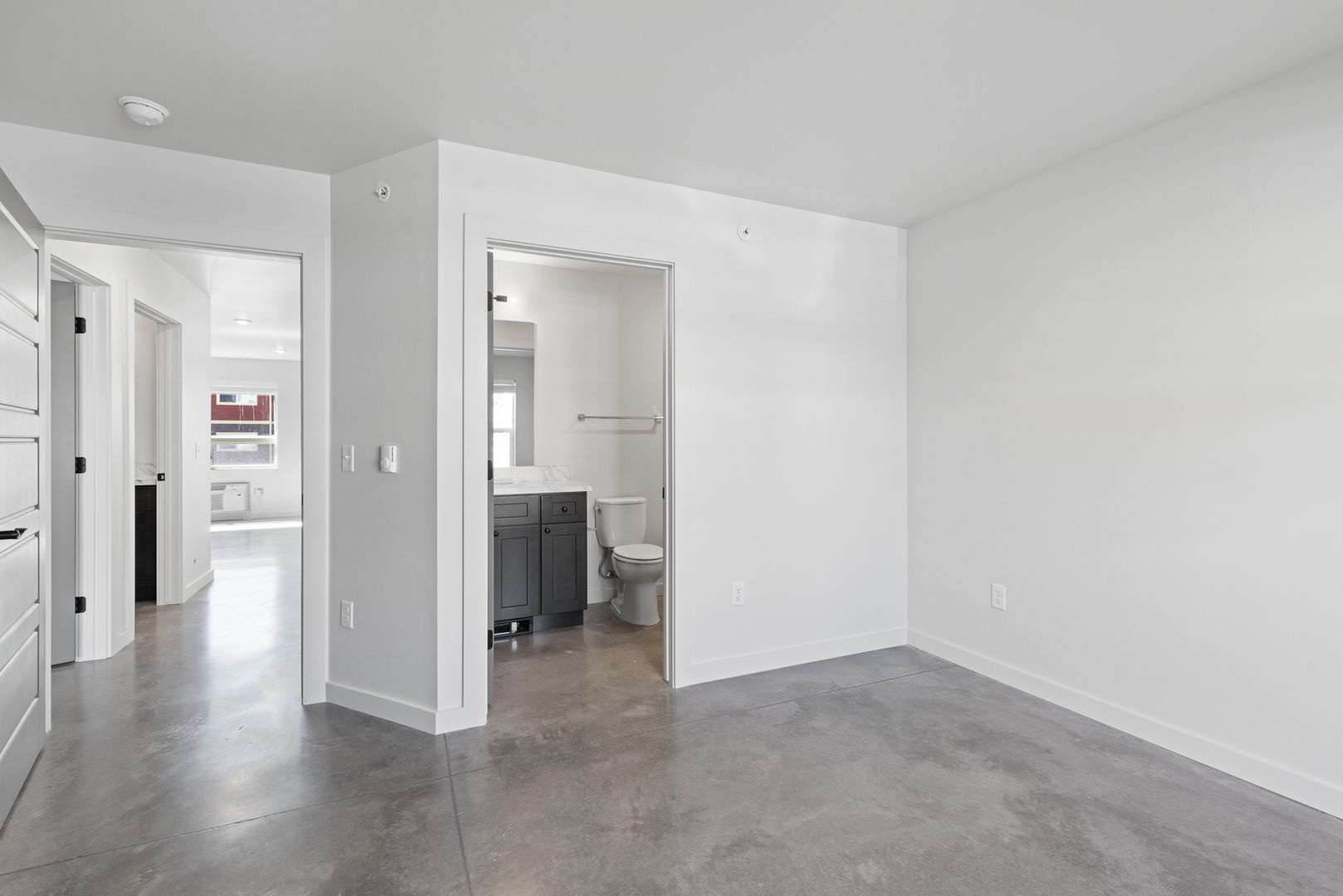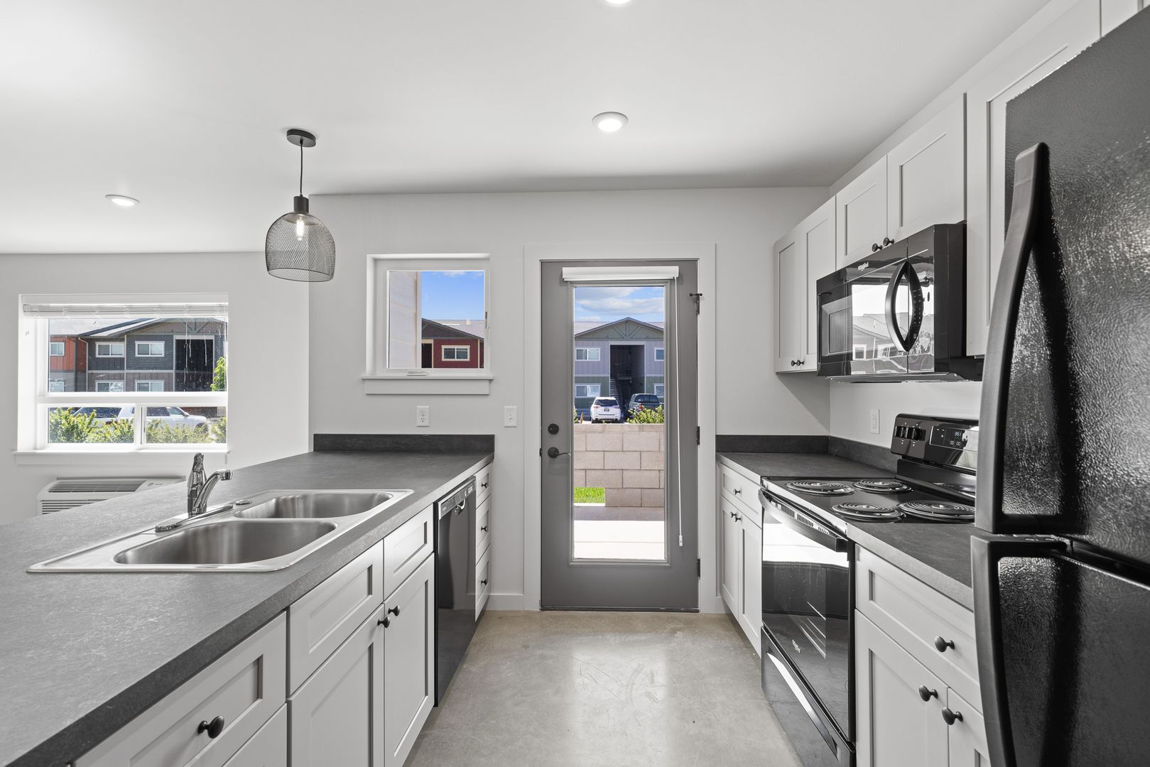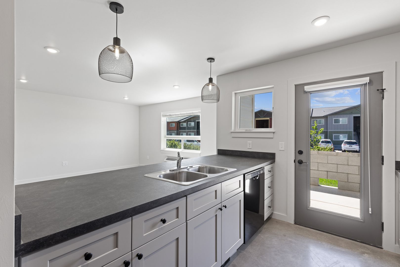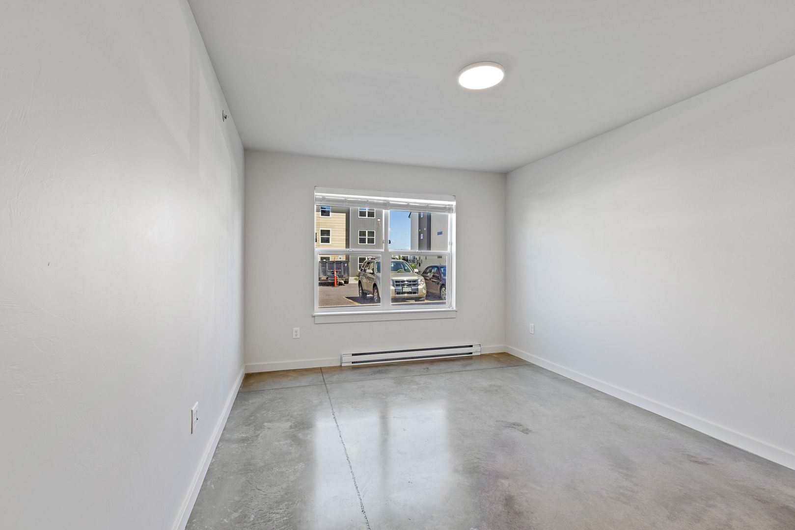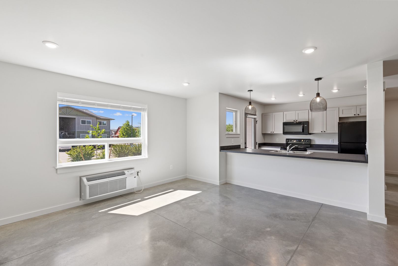 Open floor plan with a spacious kitchen and living area - great for entertaining! Features include air conditioning, polished concrete flooring through out and a washer/dryer in unit.