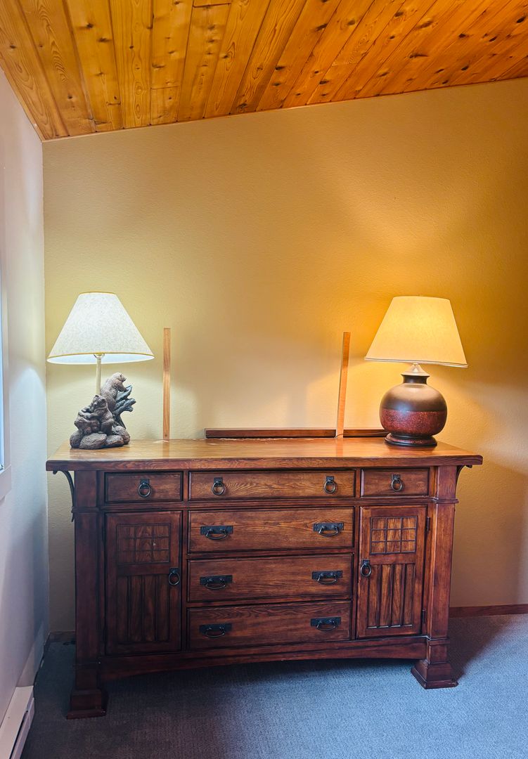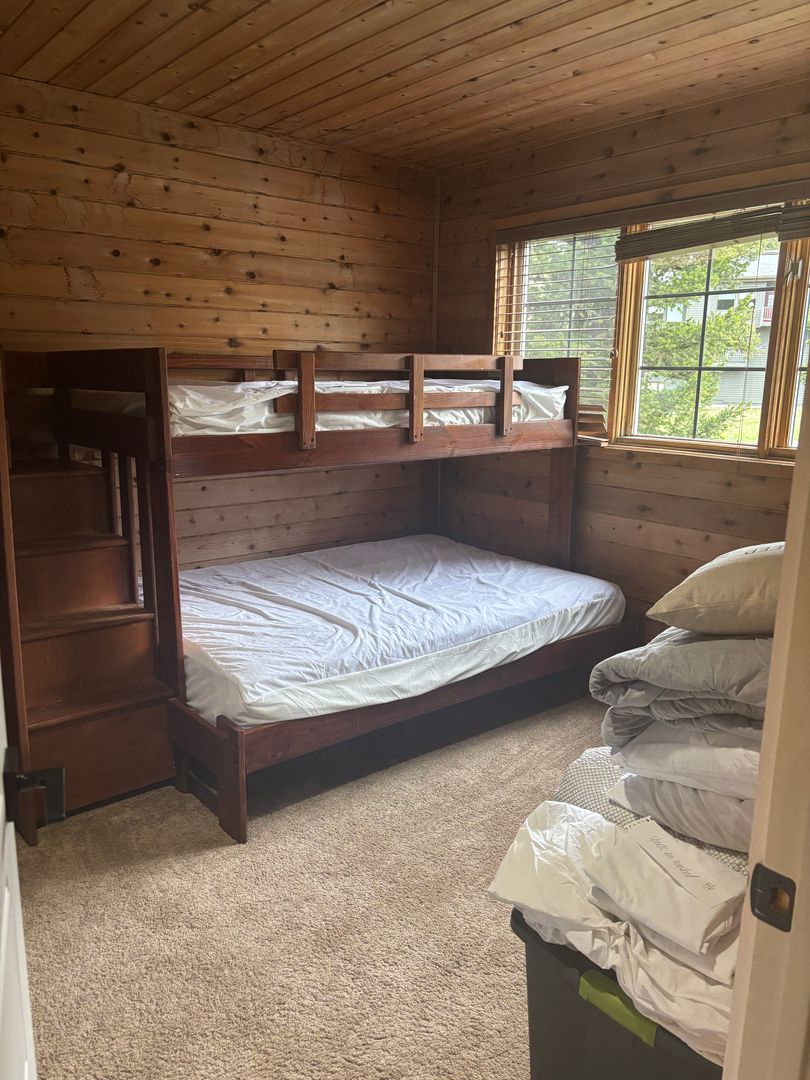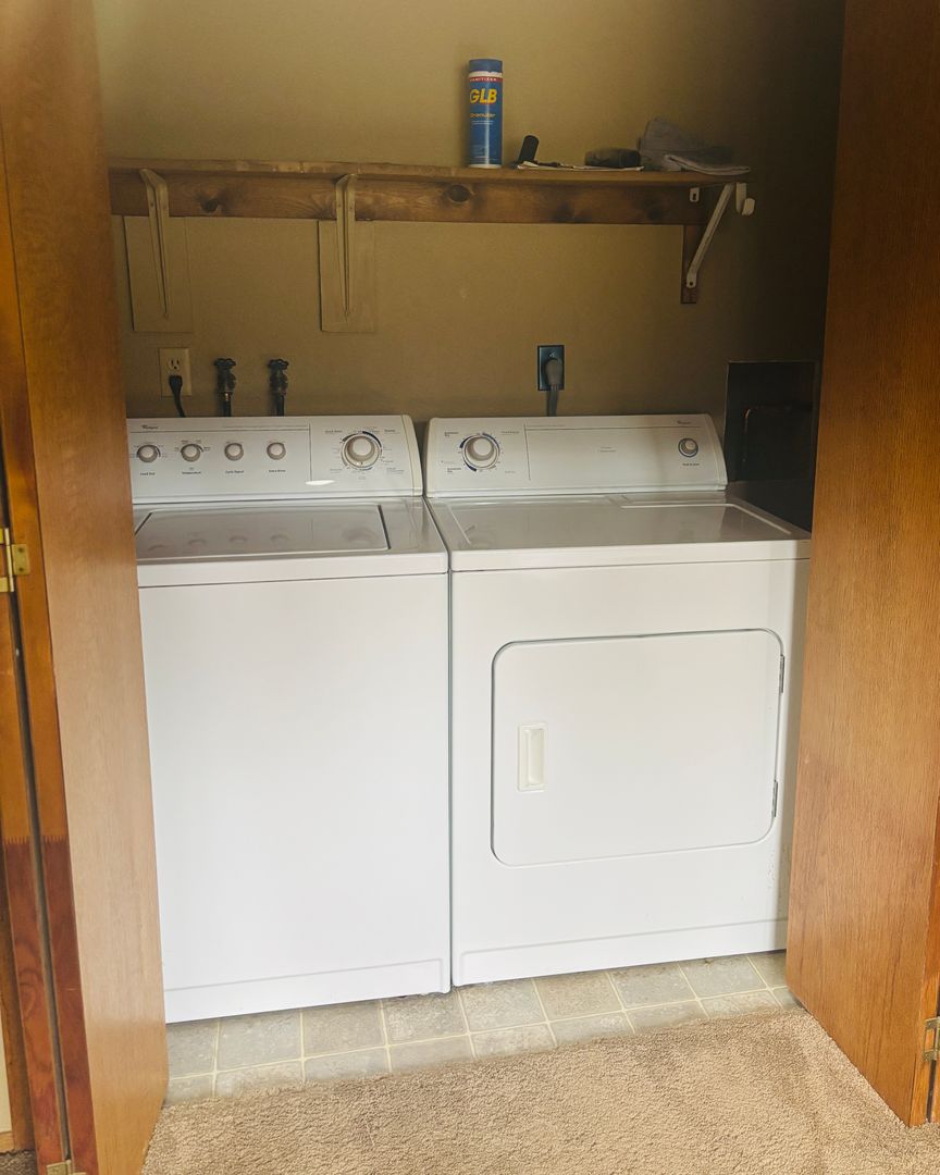 There are 8 beds, a fireplace, dish tv, washer and dryer. King bed in master, queen in a second bedroom and bunks in the other 2 rooms. **Please note that bed sheets/linen are NOT provided. Residents should bring their own.**