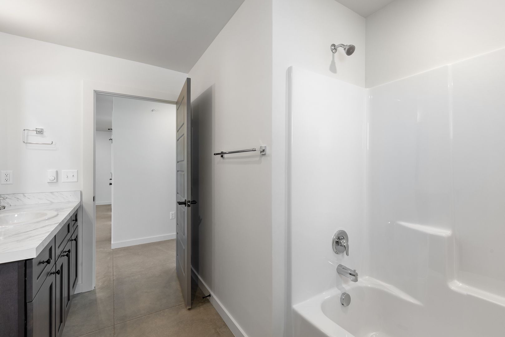 Open floor plan with a spacious kitchen and living area - great for entertaining! Features include air conditioning, polished concrete floors throughout and a washer/dryer in unit. Each unit comes with a large patio.